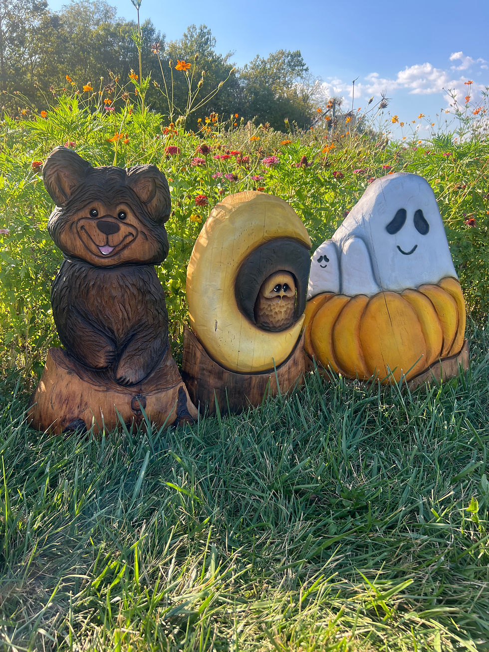 From there their imagination and chainsaws do the work to create unique and one-of-a-kind wooden sculptures from an ordinary log.