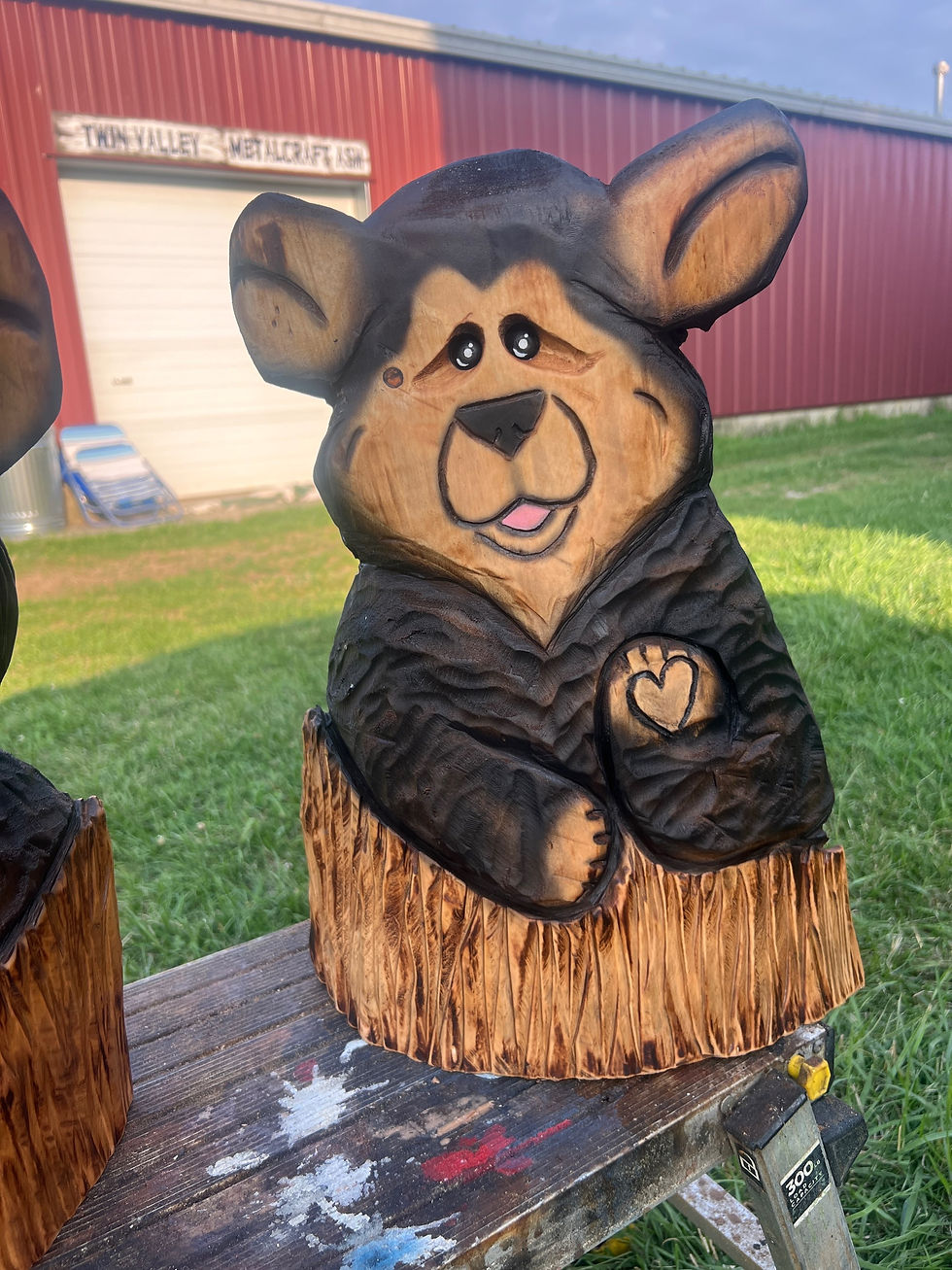 From there their imagination and chainsaws do the work to create unique and one-of-a-kind wooden sculptures from an ordinary log.